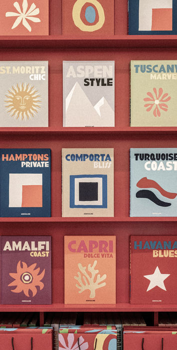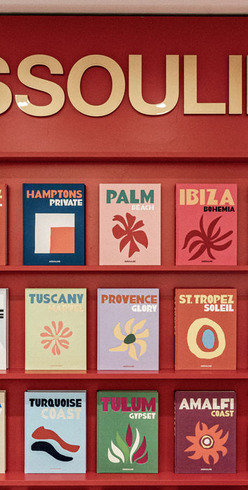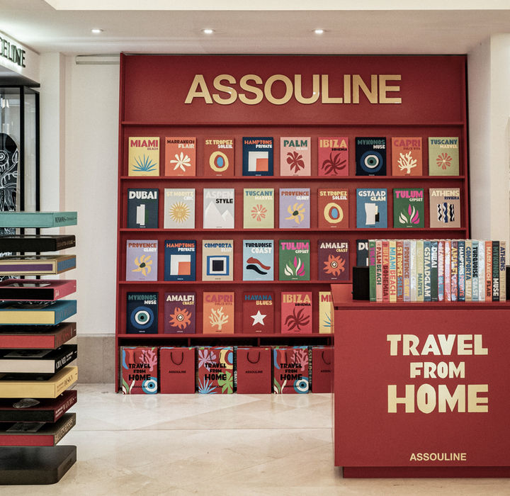 Le pop-up se distingue par ses étagères modulaires et ses couleurs vives, avec un accent particulier sur le rouge, teinte emblématique de l’univers Assouline.